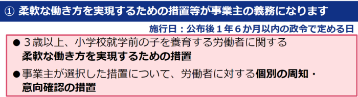 1.子の年齢に応じた柔軟な働き方を実現するための措置の拡充【育児・介護休業法】